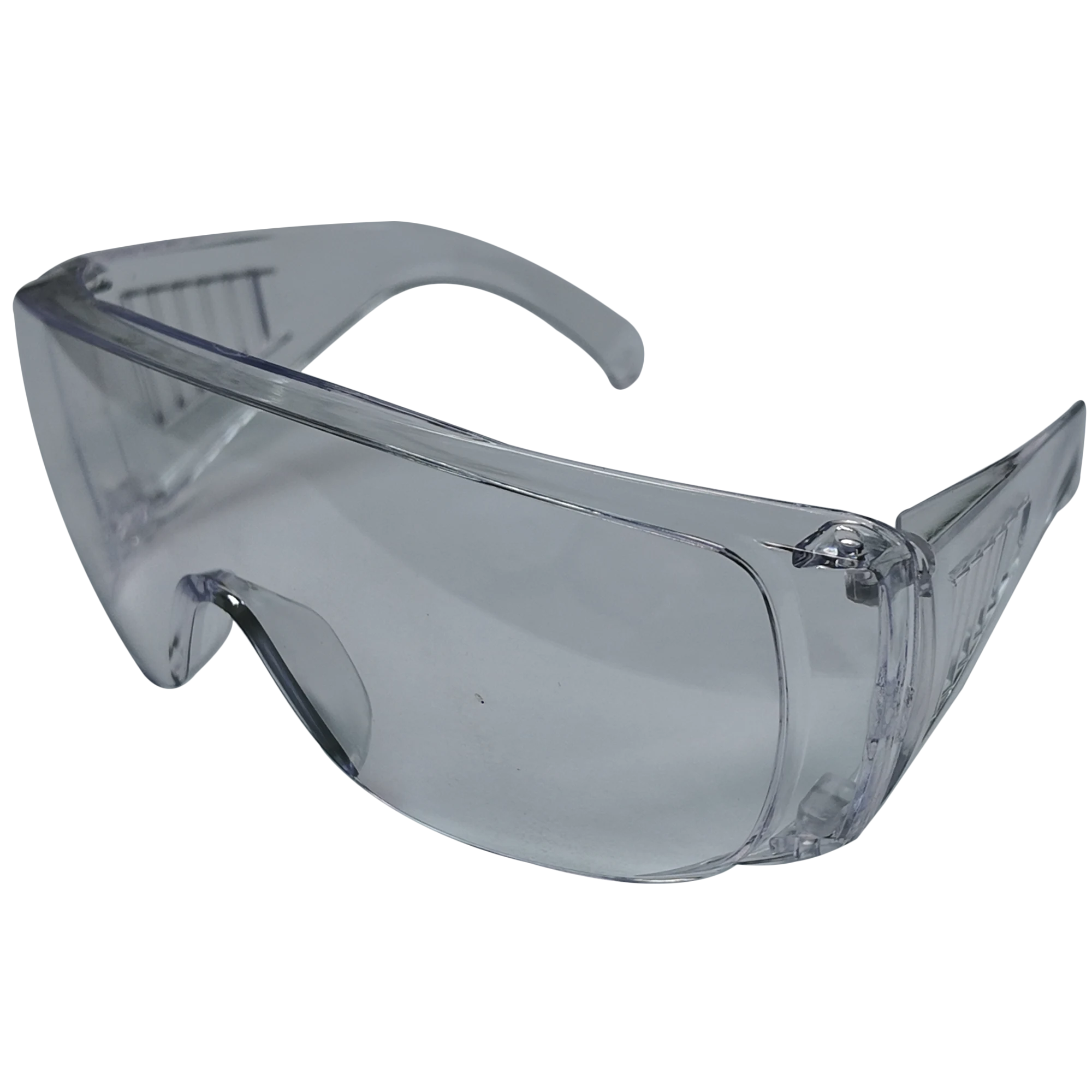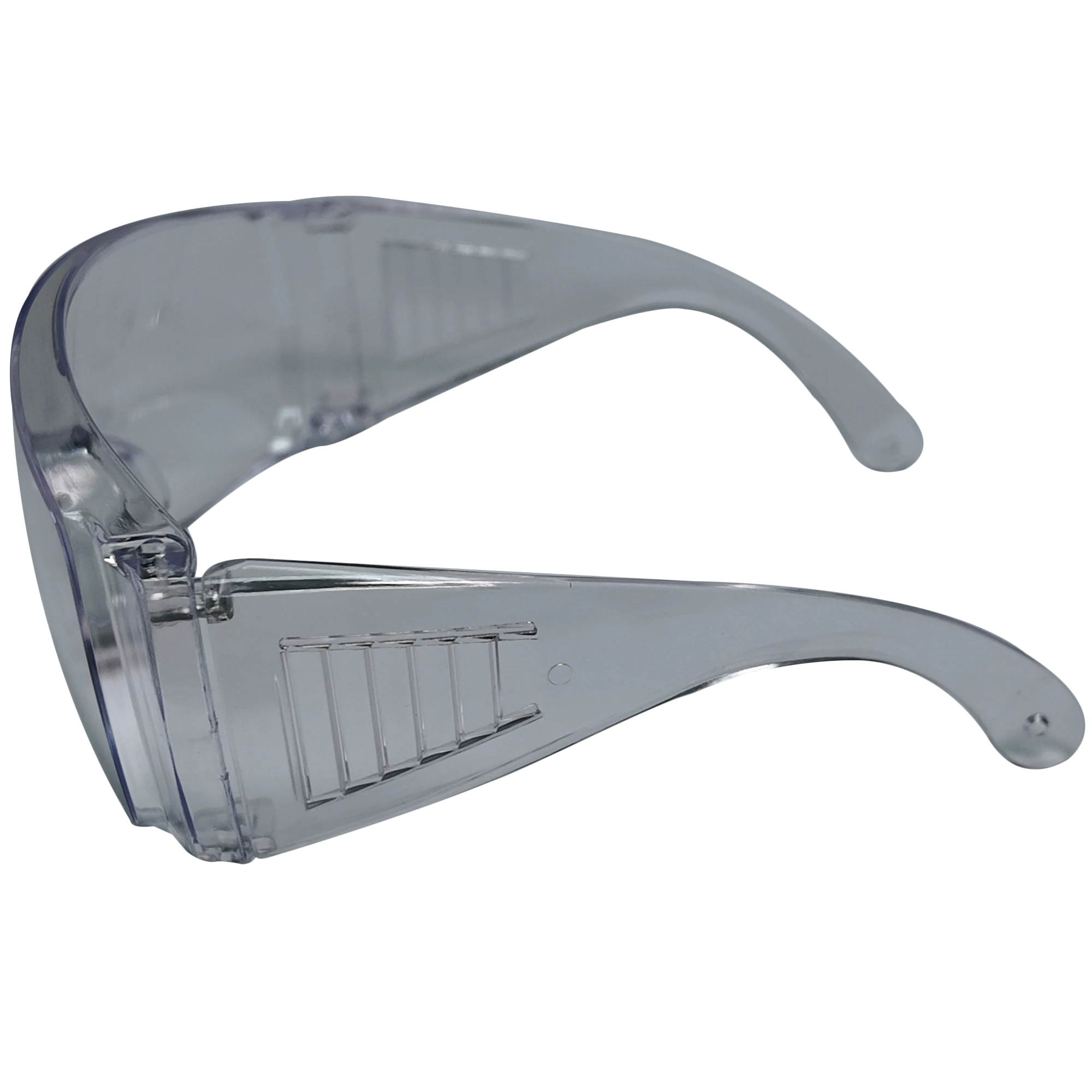 Sobrelente de seguridad claro, se adapta sobre lentes graduados, brinda protección contra impactos y partículas.